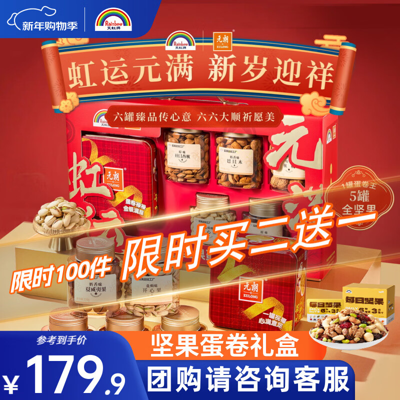 天虹牌坚果礼盒高端混合每日坚果零食大礼包开心果年货送礼长辈团购 【6罐/1.584kg】100%坚果元朗天虹礼盒