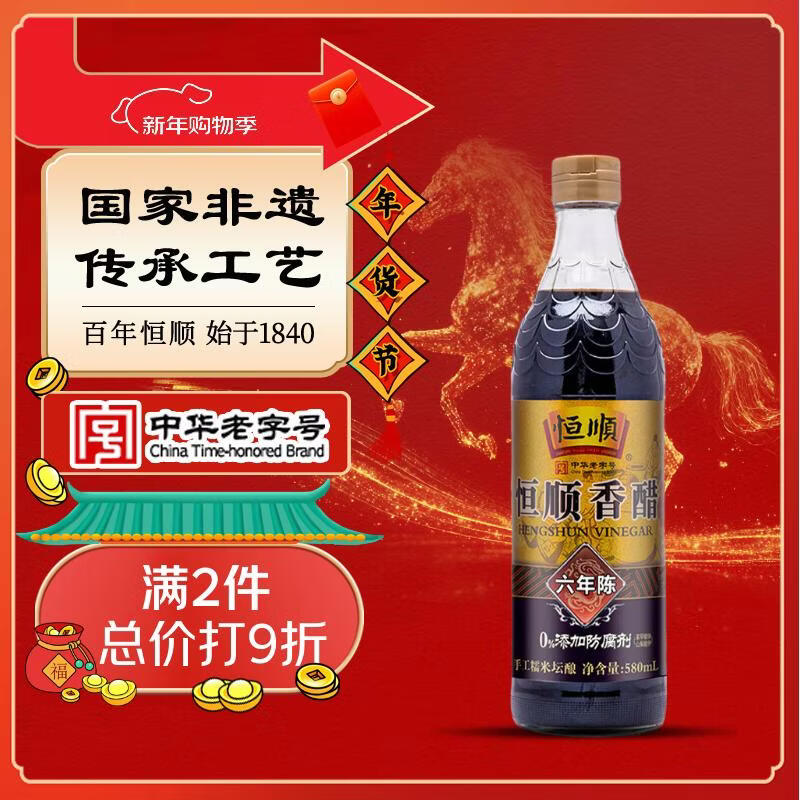恒顺 【品酒会同款】六年陈镇江香醋6.4度580ml 手工糯米坛酿蘸食