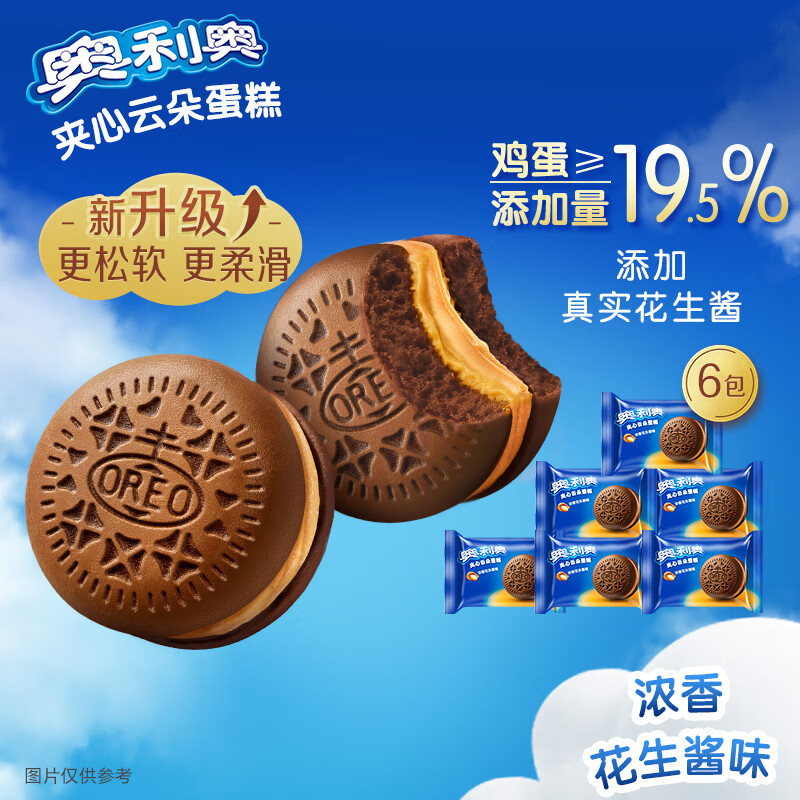奥利奥(Oreo)夹心云朵蛋糕浓香花生酱味6枚132g 糕点休闲零食 早餐下午茶