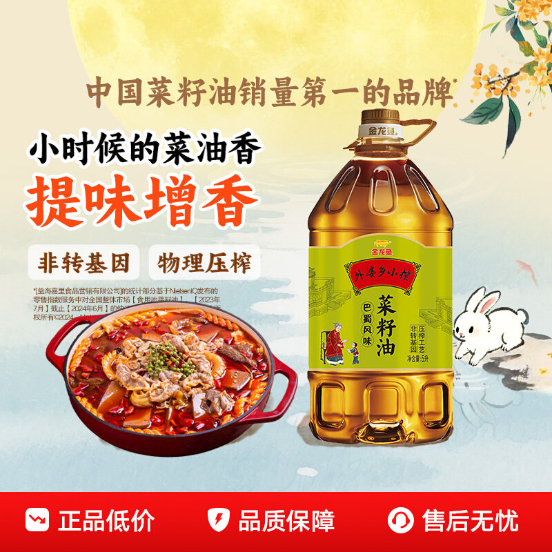 金龙鱼菜籽油 外婆乡小榨食用油5L巴蜀风味非转基因 物理压榨桶装