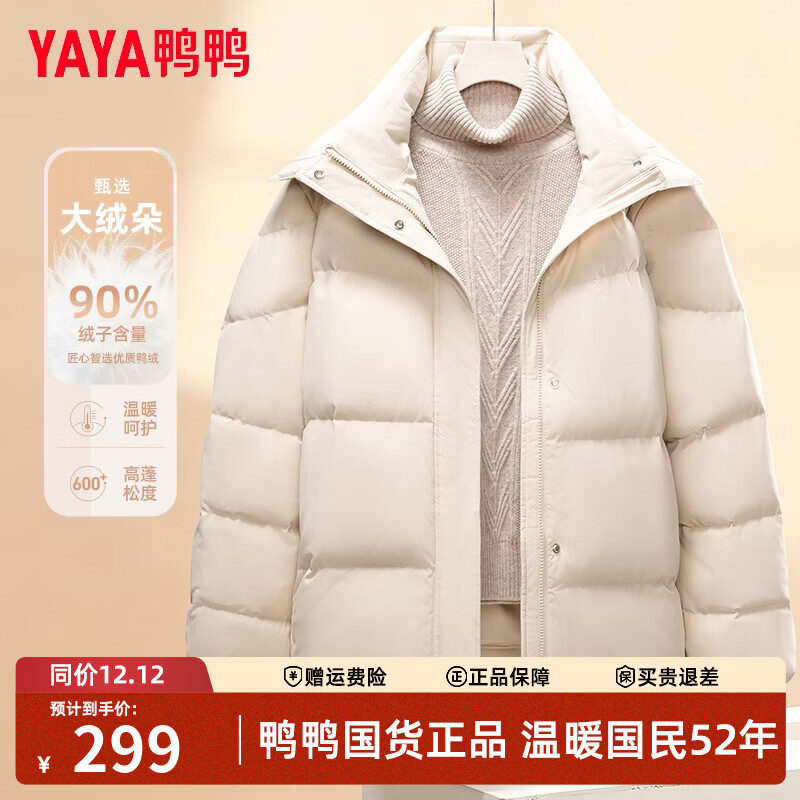 鸭鸭羽绒服女短款2025冬季新款连帽大口袋韩版宽松休闲小个子保暖外套 米色 M