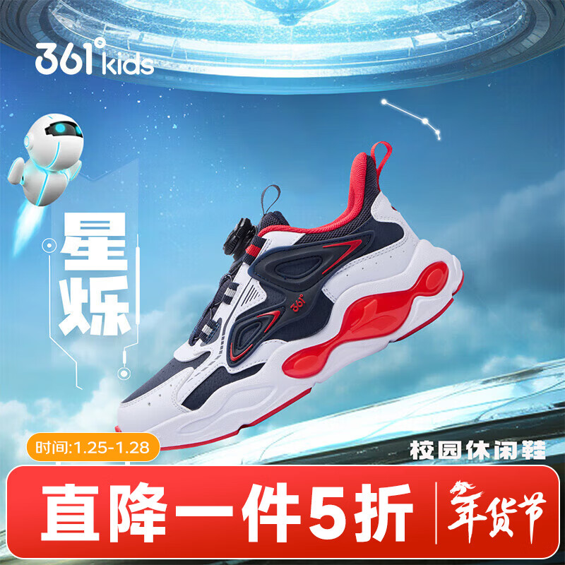361°童鞋男童运动鞋皮面旋钮扣儿童休闲鞋冬季新款中大童鞋子 深石蓝色/361度白/能量红色 38
