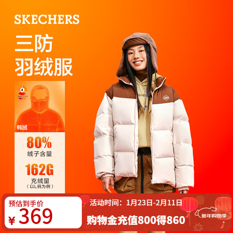 斯凯奇(Skechers)冬季面包羽绒服男女同款潮流立领短款外套 浅棕色/0046 M