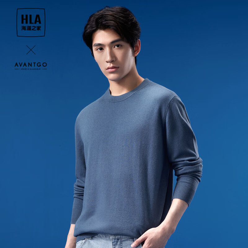 海澜之家羊毛衫男款轻商务纯羊毛保暖毛衣冬季男 HNZAW3Y056A中蓝9A L 175/92A 推荐137~150斤