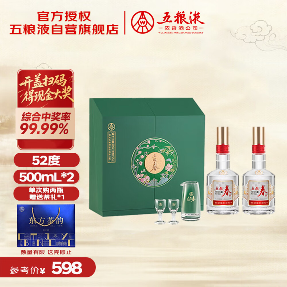 五粮液股份 五粮春二代菁萃风雅礼盒 52度浓香型白酒500mL*2瓶 礼盒装