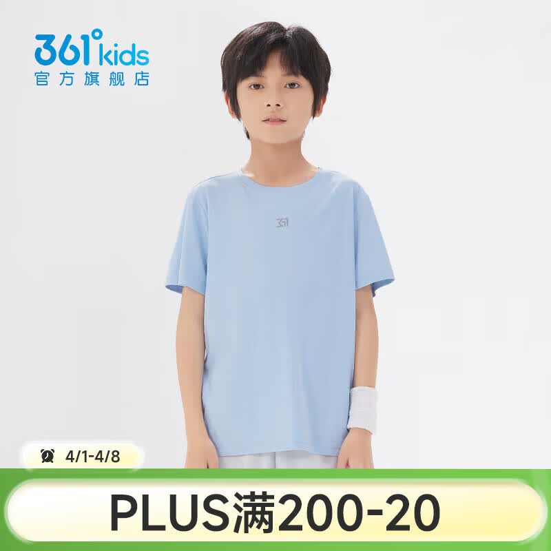 361°童装男女童短袖针织衫夏季新款速干儿童T恤中大童冰爽上衣 柔蓝1204-男童 150cm