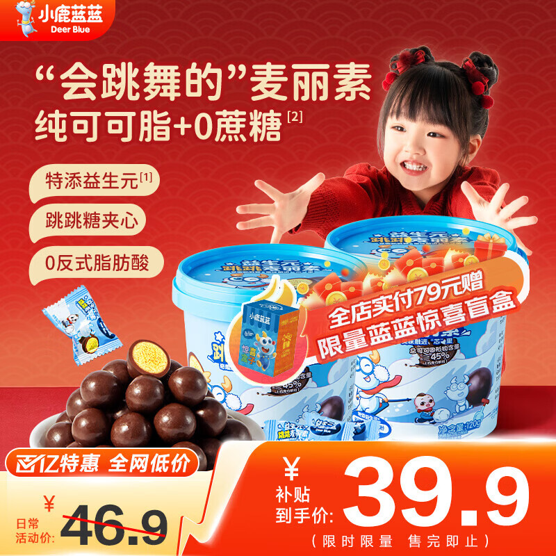 小鹿蓝蓝宝宝零食特添益生元跳跳糖口感麦丽素独立袋装纯可可脂零反式脂肪 【添加益生元】跳跳麦丽素2桶