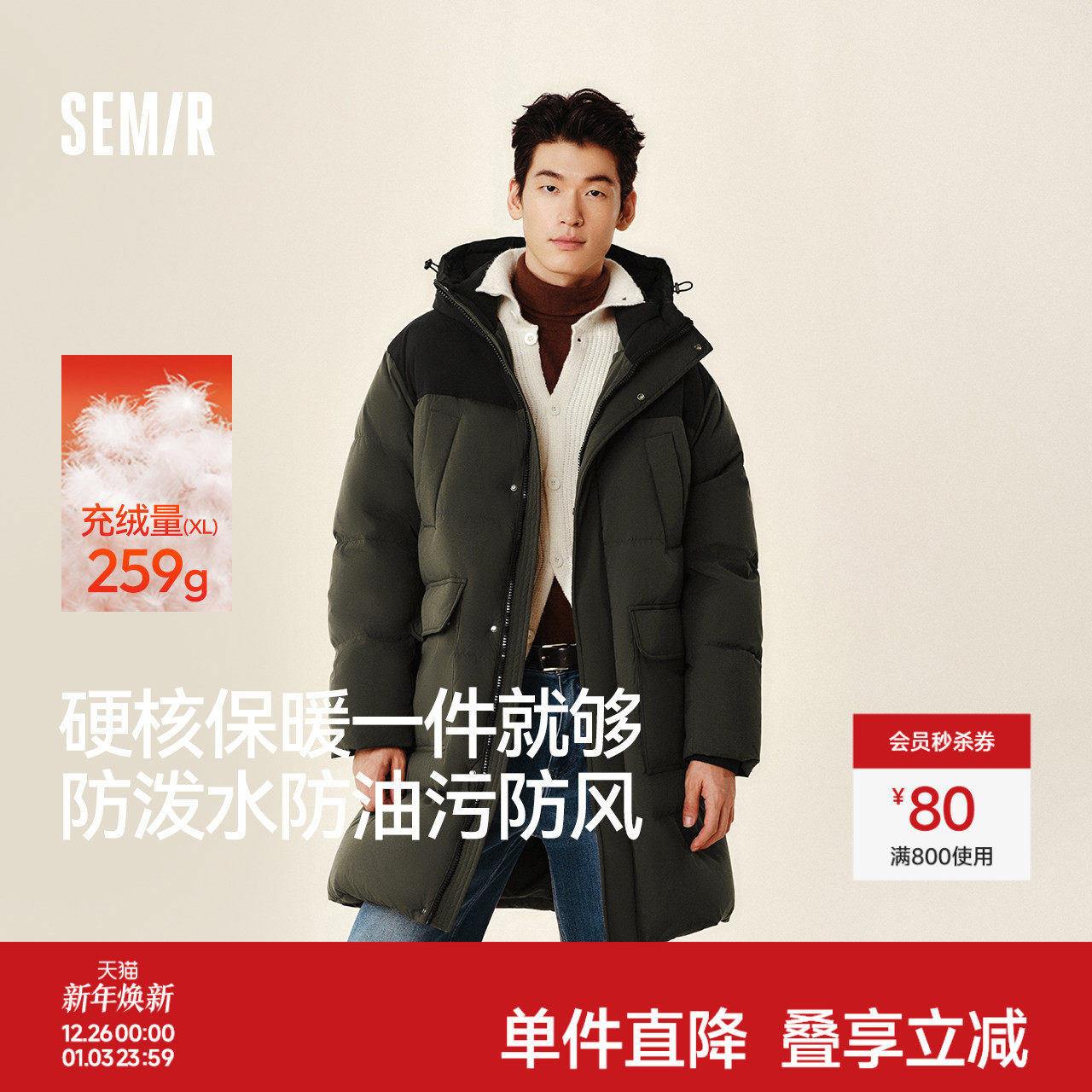 轻松|森马羽绒服男冬装90绒子加厚防泼水外套长款连帽上衣情侣款