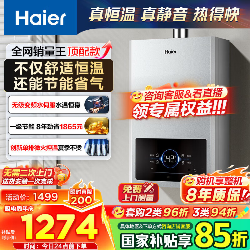 海尔【咨询客服领补贴】【JM6MAX】16升燃气热水器天然气节能省气无级变频水伺服恒温静音低水压启动 16L JM6星光【升级无级变频水伺服】