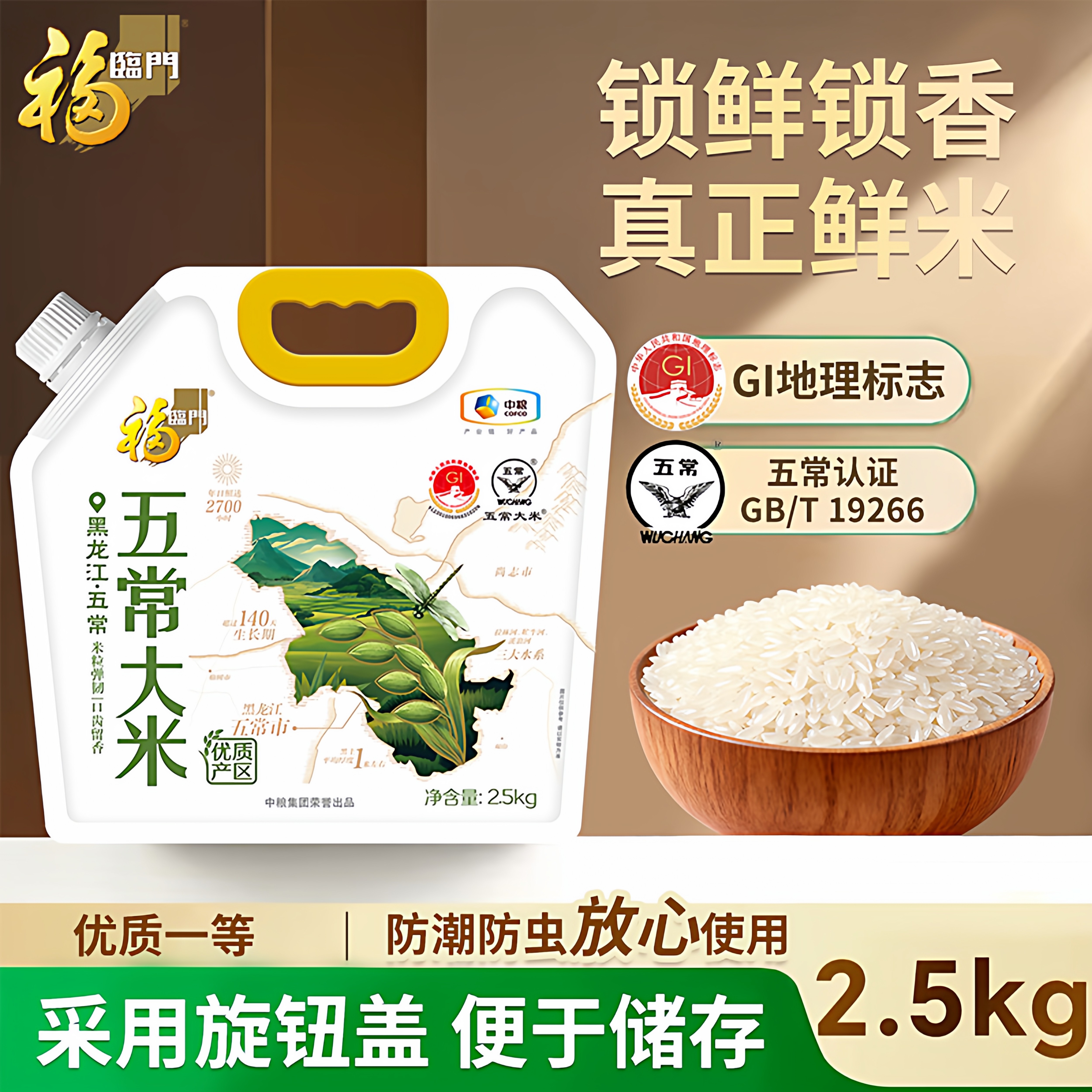 福临门旋钮盖优质产区五常大米2.5KG东北大米五常官方保鲜5斤装