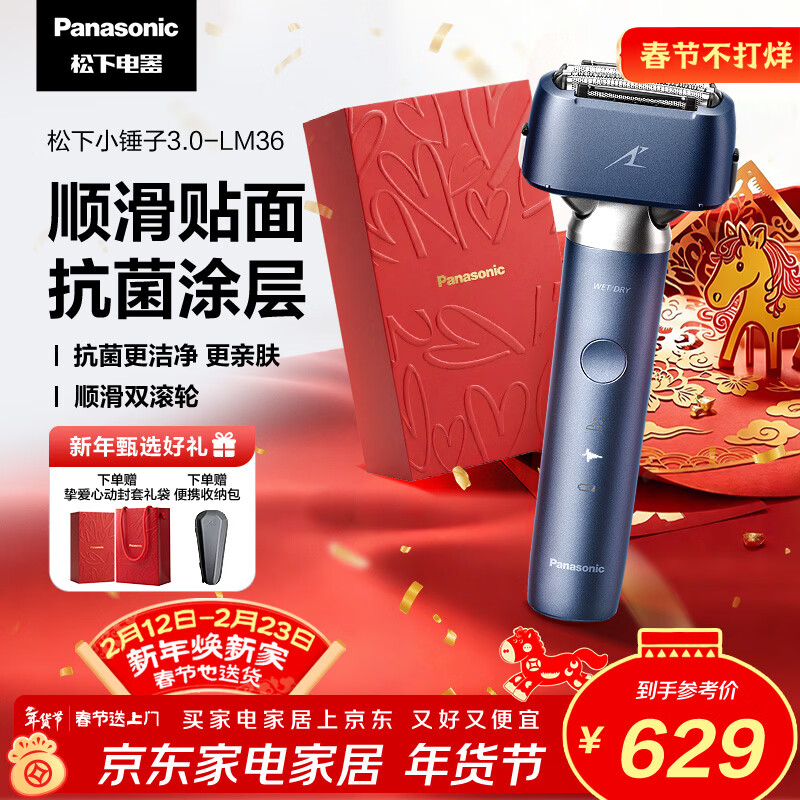 松下(Panasonic)全新小锤子3.0电动剃须刀往复式顺滑滚轮亲肤便携款刮胡刀Type-c新年礼物送男生LM36雾蓝生日礼物