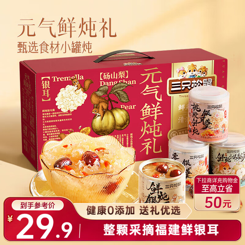 ÈýÖ»ËÉÊóÔªÆøÏÊìÀÀñºÐ200g*8¹ÞÏÊìÀÌÒ½ºÒø¶ú¸þÀæÌÀË®¹û×̲¹ÓªÑøÐÂÄêËÍÀñ