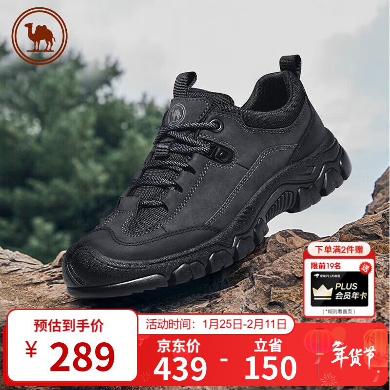 骆驼牌 运动鞋男休闲户外徒步登山鞋抓地厚底减震 P14A379617 黑色 44