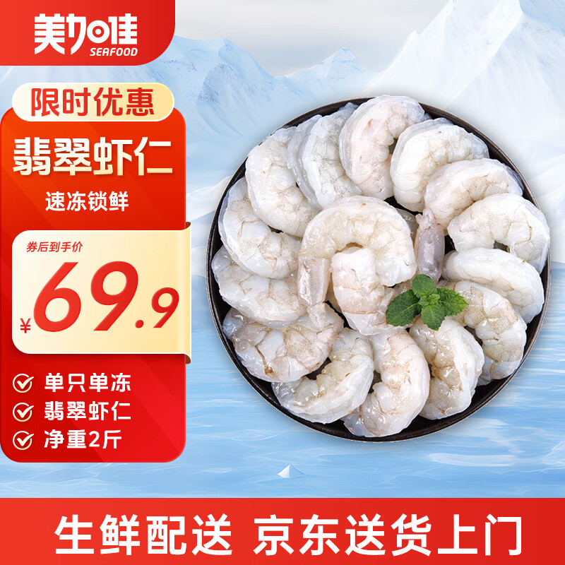 美加佳翡翠生虾仁 去冰净重2斤 单冻虾仁 去虾线 156-198只 中秋送礼