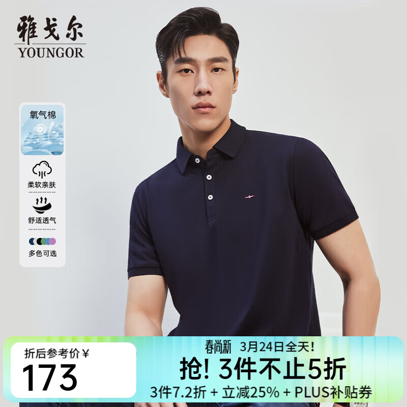雅戈尔(YOUNGOR)短袖POLO衫男翻领保型领设计棉涤面料手感舒适新polo衫 VSPC533113FCA藏青 L