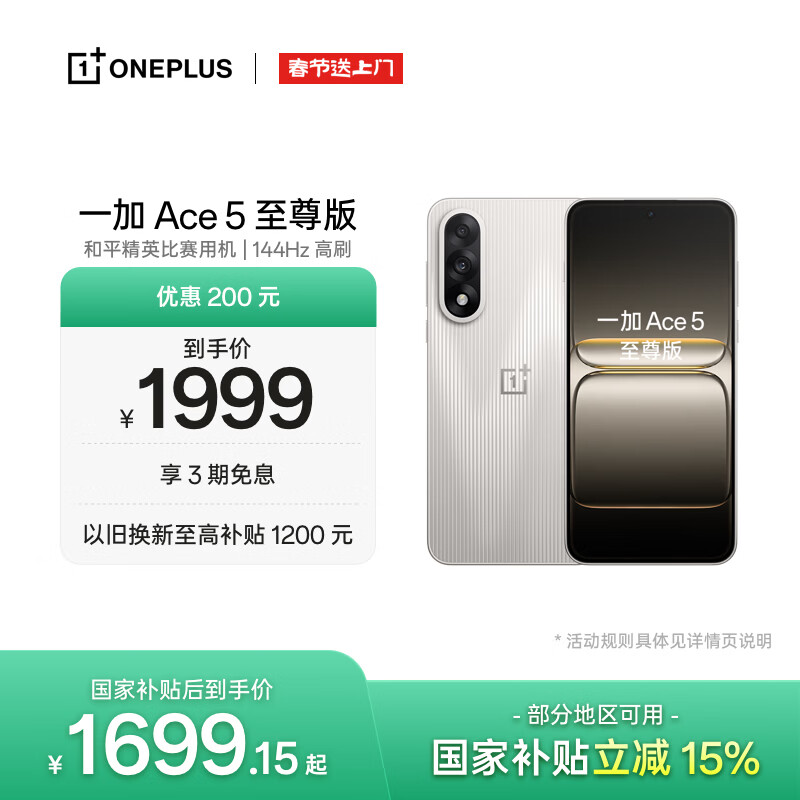 一加 Ace 5 至尊版 12GB+256GB 燃力钛 oppo 天玑 9400+芯片 学生智能游戏安卓机手机 国家补贴