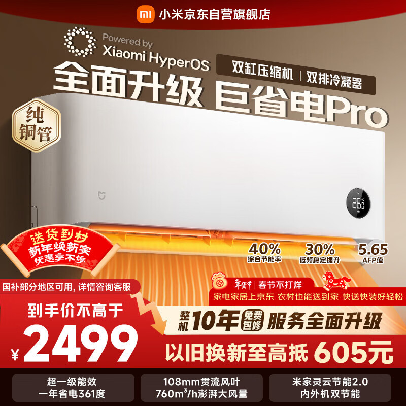 小米米家空调 巨省电Pro 1.5匹 超一级能效 双缸压缩机 空调挂机 35GW-NA20/V1A1 整机十年质保