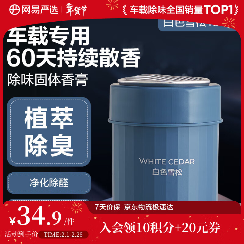 网易严选车载固体香膏香薰汽车香氛 车内除异味空气清新送礼白色雪松180g