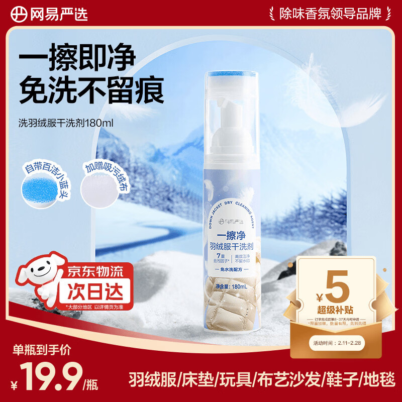 网易严选羽绒服干洗剂180ml 免水洗即喷即擦 便携干洗神器