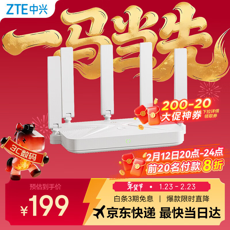 中兴(ZTE)巡天 AX3000满血WIFI6千兆无线家用路由器 自研双核主芯片 5G双频穿墙王wifi路由 Mesh 3000M速率