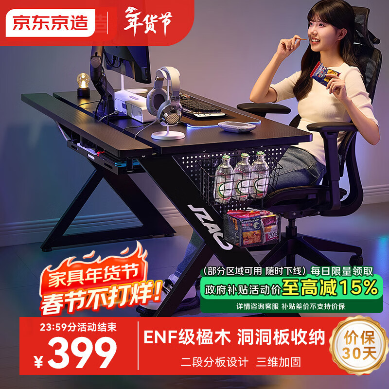 京东京造泰坦A3电竞桌台式电脑桌子实木ENF级家用书桌办公桌碳纤维纹1.4m