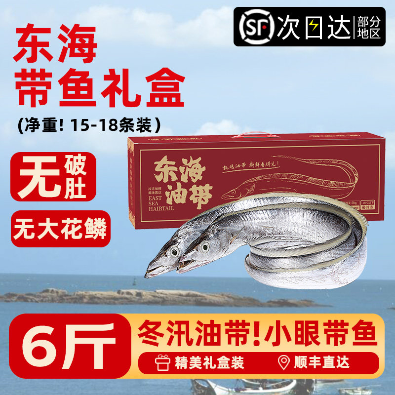 鱻谣东海带鱼礼盒3kg特大小眼带鱼鲜冻年货礼盒送礼刀鱼带鱼段