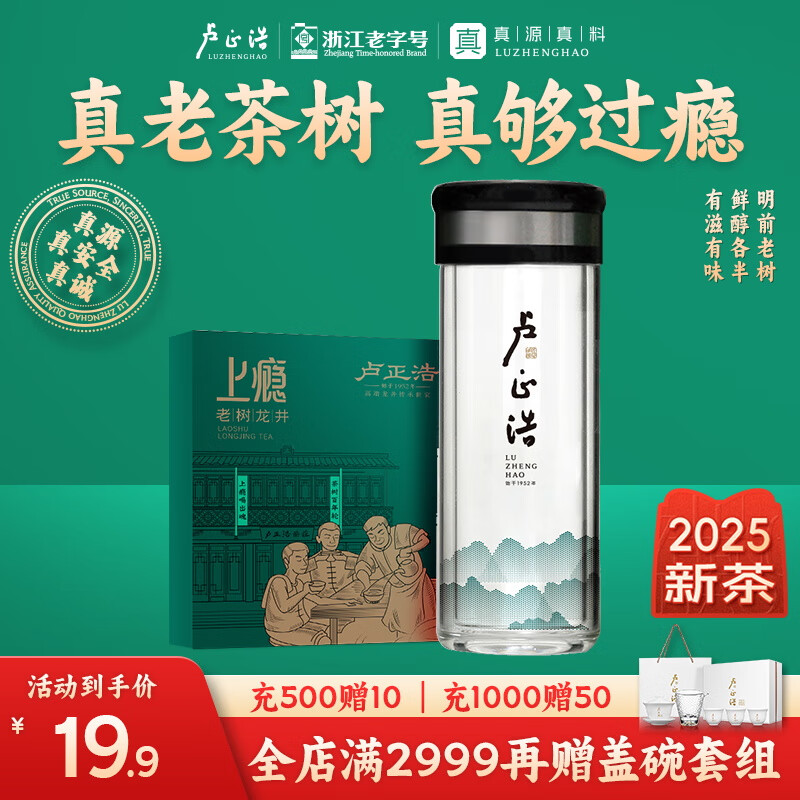 卢正浩龙井明前 2025新茶上市绿茶茶叶钱塘产区龙井上瘾系列 品鉴6g+双层玻璃杯