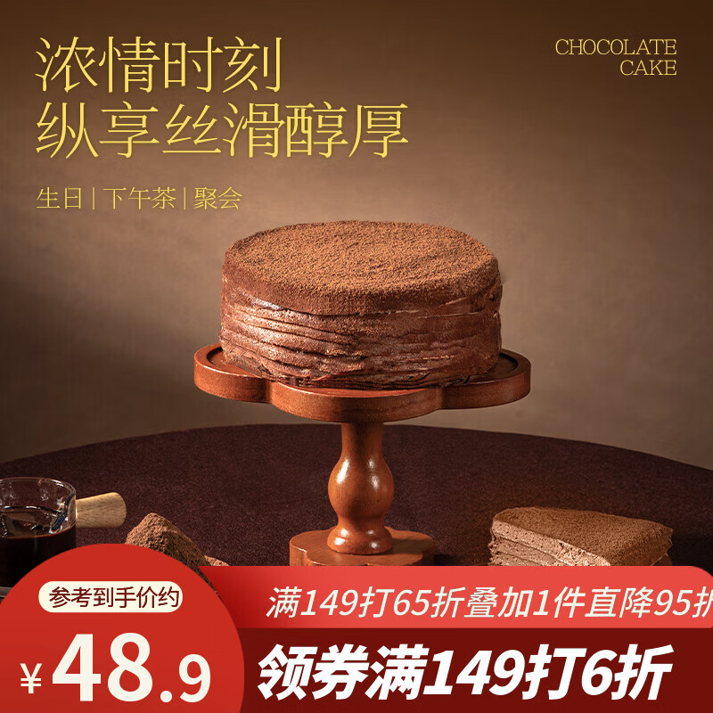 鲜京采纯脂巧克力千层蛋糕400g/6寸 动物奶油雪糕糕点零食甜品中秋聚会