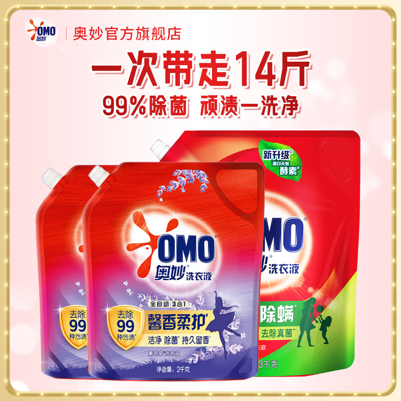 奥妙洗衣液 除菌除螨持久留香三合一 含金纺天然酵素 【14斤】除菌3kg+薰衣草2kg*2