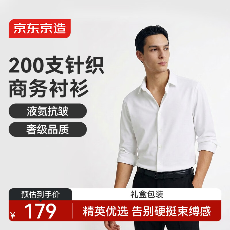 京东京造【针织200支】衬衫男白衬衫长袖衬衫春季新款商务衬衣 白色 41