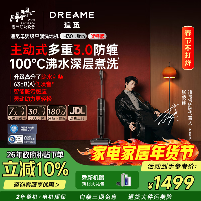 追觅【张凌赫推荐洗地机】H30Ultra旋锋版平躺0缠毛家用热水H20Ultra高温速干吸拖洗烘一体扫地机吸尘 H30 Ultra旋锋版 【超薄平躺爆款】