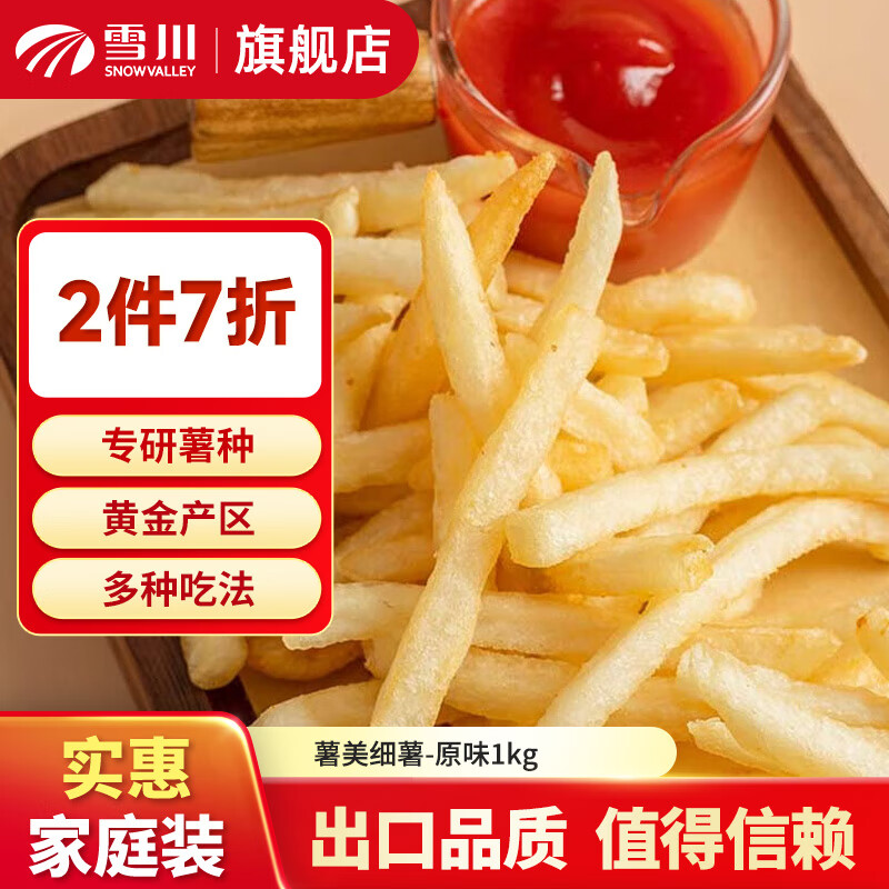 雪川食品薯美细薯冷冻薯条半成品空气炸锅方便速食夜宵零食 原味1kg