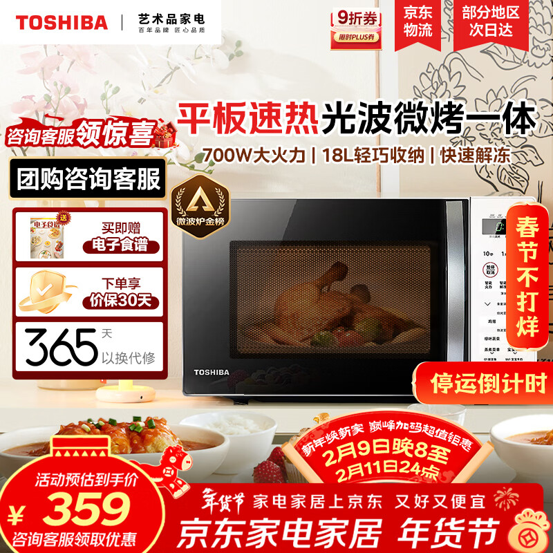 东芝(TOSHIBA)微波炉烤箱一体机 光波家用微波炉mini小型平板式易清洁功能小型烧烤智能解冻18L ER-R200ACNW