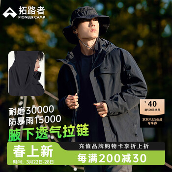 拓路者朱雀冲锋衣男硬壳户外旅行高海拔登山服春装夹克外套防风防水透气 黑色-单冲腋下拉链款 M