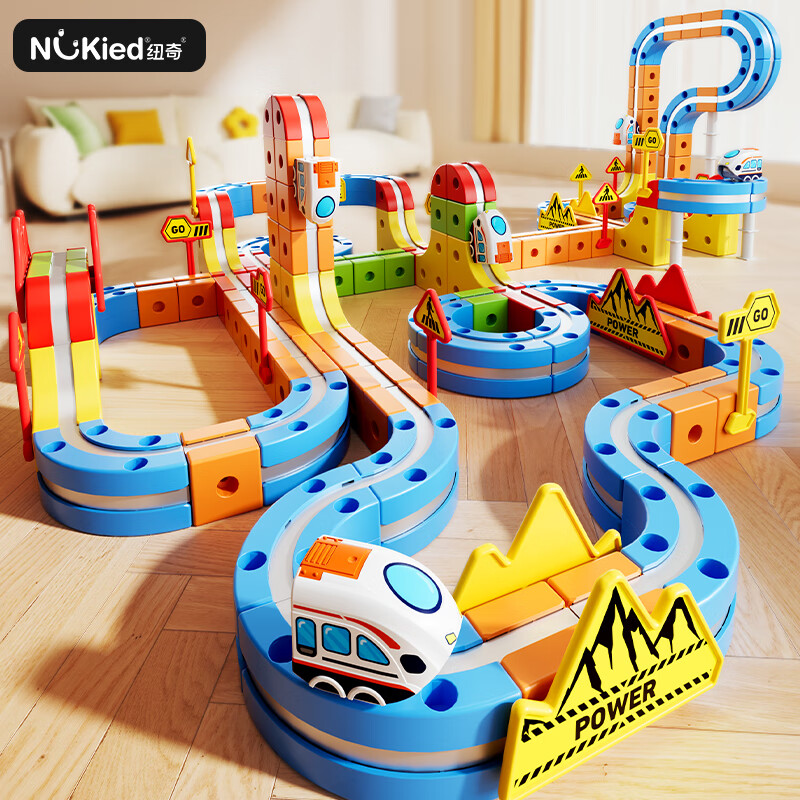 纽奇儿童过家家玩具磁力轨道小火车积木拼插反重力DIY轨道车生日礼物 磁吸轨道车 | 75pcs | 礼盒