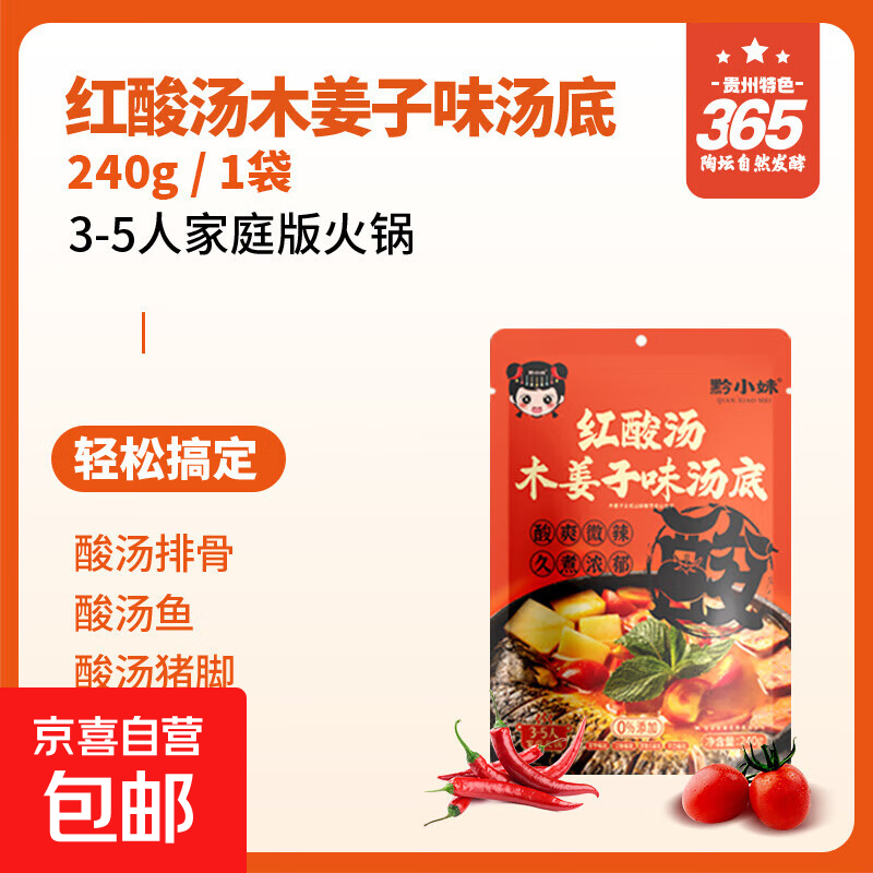 黔小妹贵州酸汤木姜子红酸汤火锅底料酸汤鱼肥牛调料安顺夺夺粉 木姜子味贵州酸汤240g*1袋