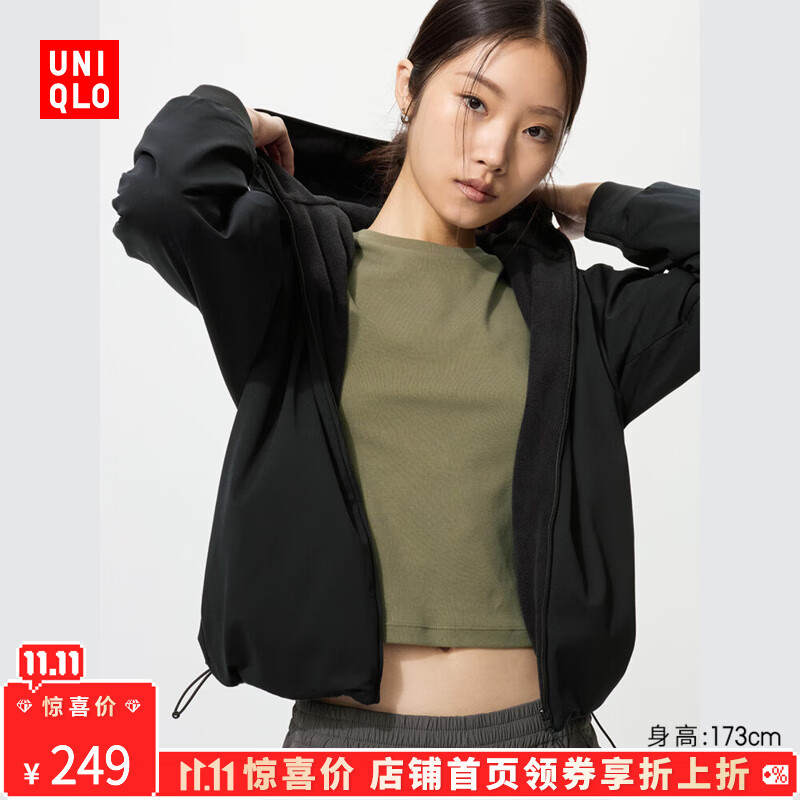 优衣库惊喜价女装双面穿防风摇粒绒拉链连帽外套户外防水479697 479697/09黑色 M