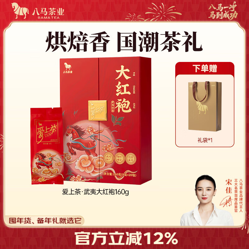 八马茶业 武夷岩茶 大红袍/肉桂/水仙 乌龙茶 爱上茶 送礼茶叶 礼盒装 【大红袍】160g