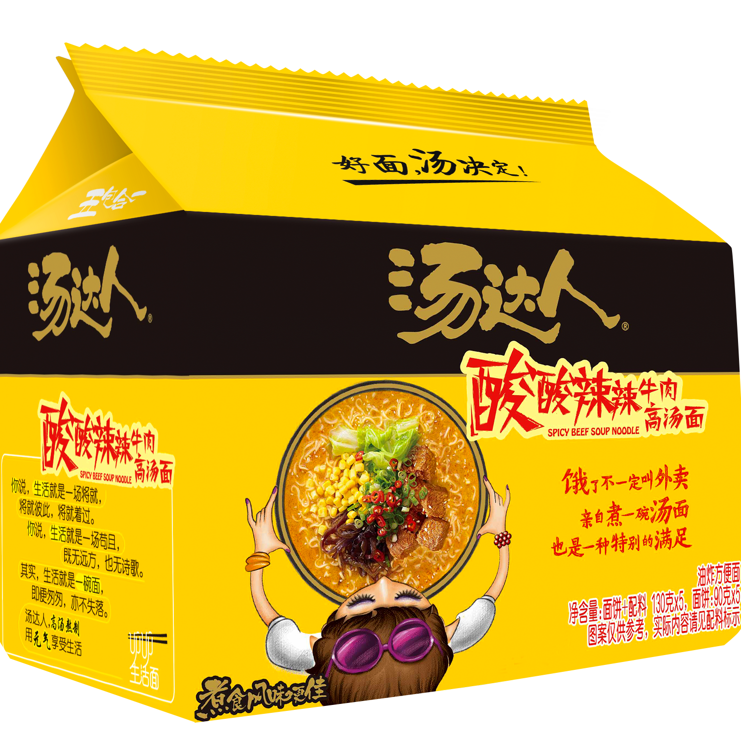 统一清真版汤达人 酸酸辣辣牛肉拉面 130g*5袋 五连包 方便面速食泡面