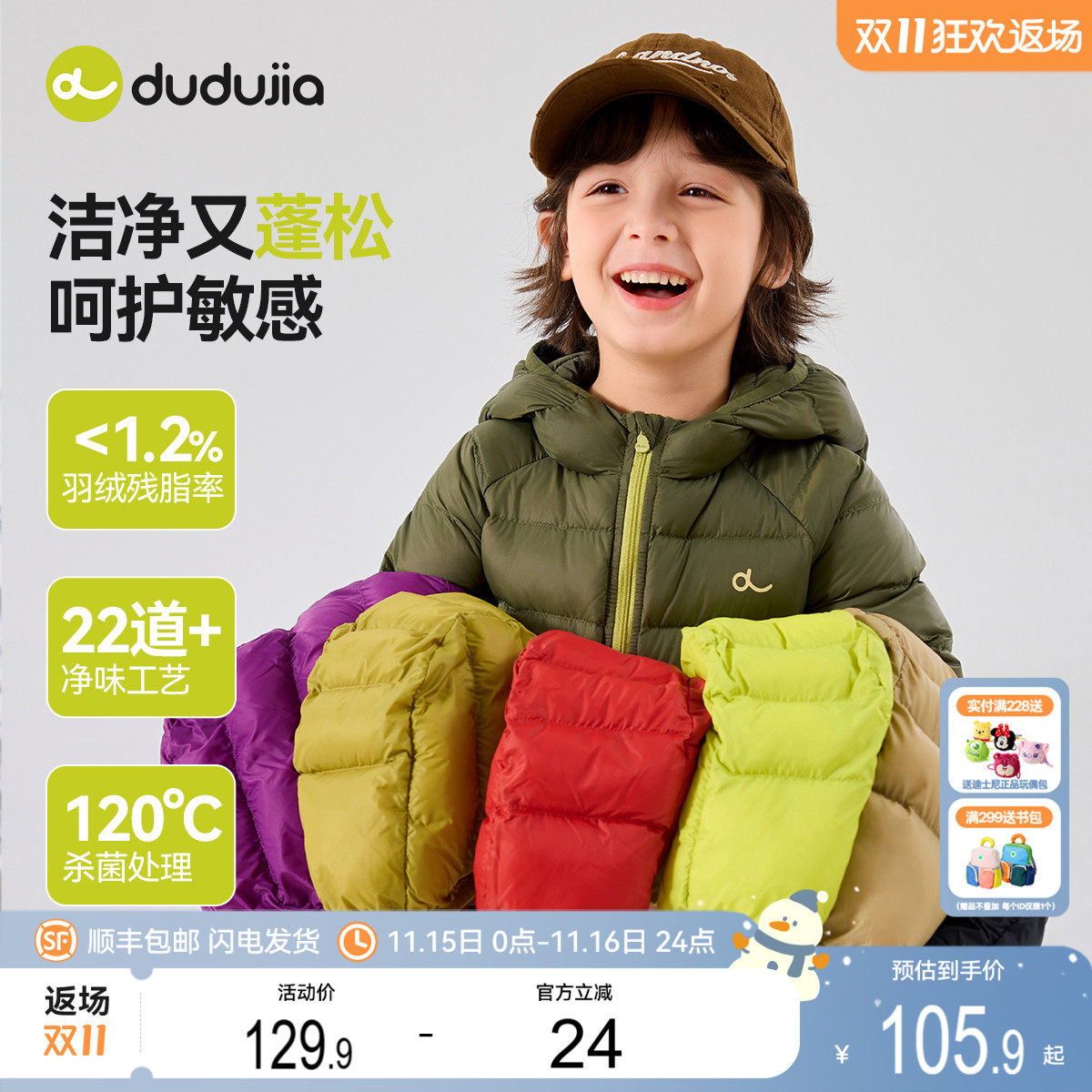 嘟嘟家儿童轻薄羽绒服男童冬款外套宝宝冬季防寒服女童冬装童装