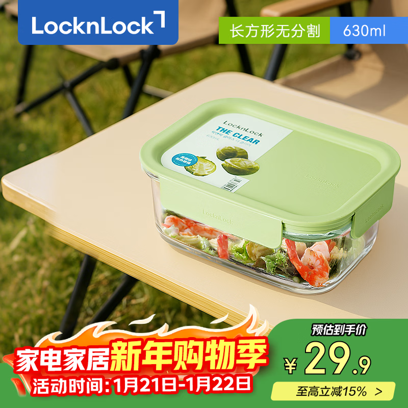 乐扣乐扣(LOCK&LOCK)耐热玻璃饭盒微波炉保鲜盒密封便当盒LNG524G_630ml