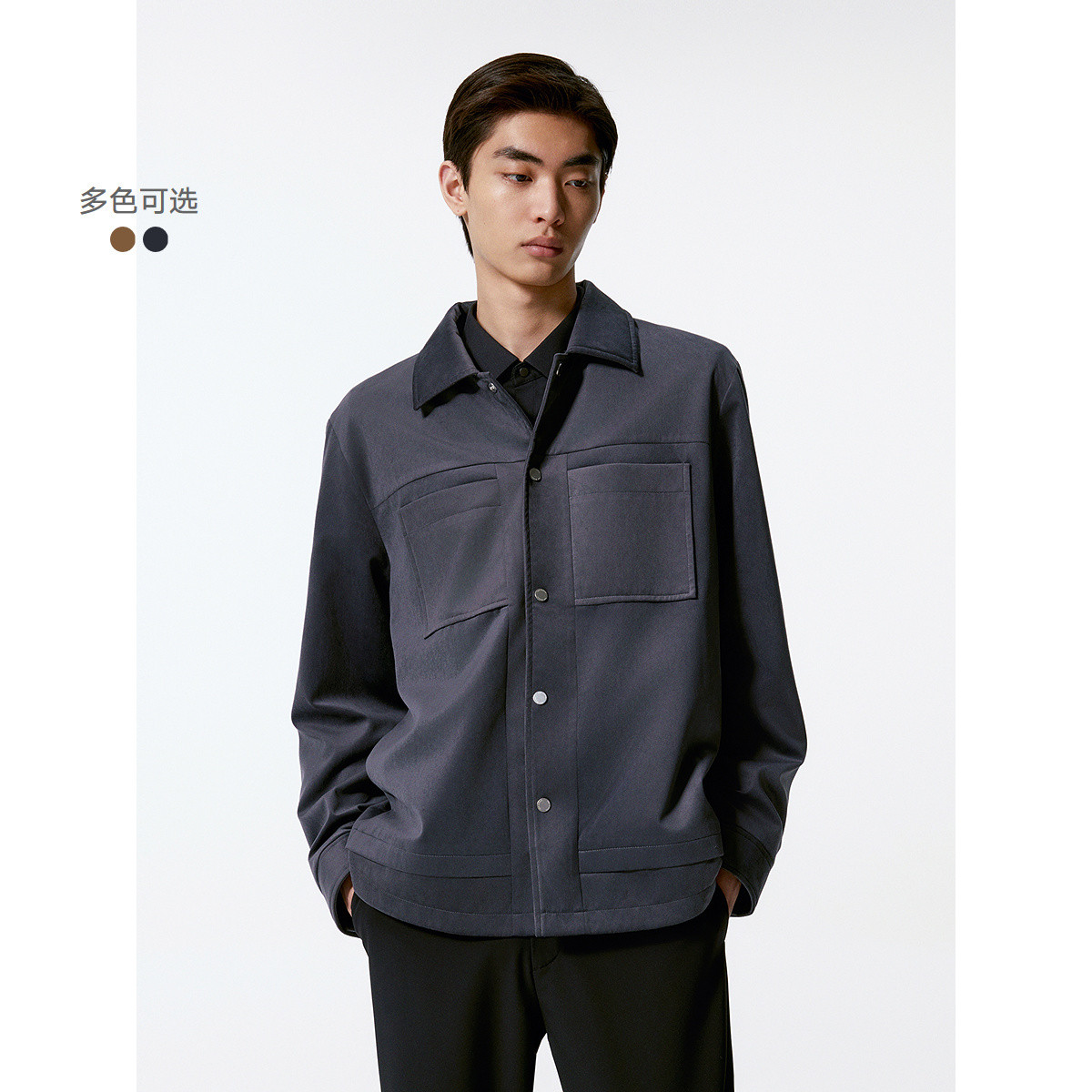 男装 春季男士绒面质感时尚夹克男外套简约翻领长袖外套
