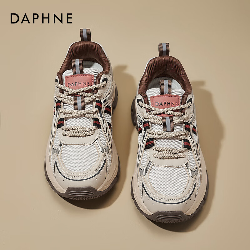 达芙妮透气老爹鞋厚底女款2026春季新款户外徒步鞋轻便慢跑运动鞋 棕红色 37