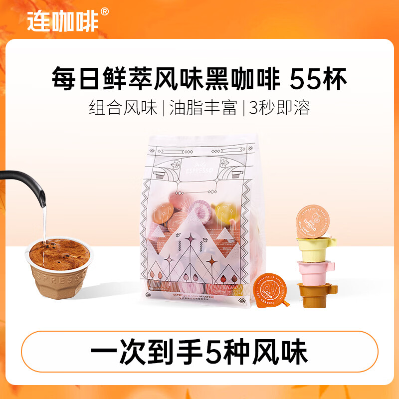 连咖啡 速溶美式黑咖啡粉 运动健身混合风味意式浓缩拿铁 混合风味2g*55颗(25年7月)