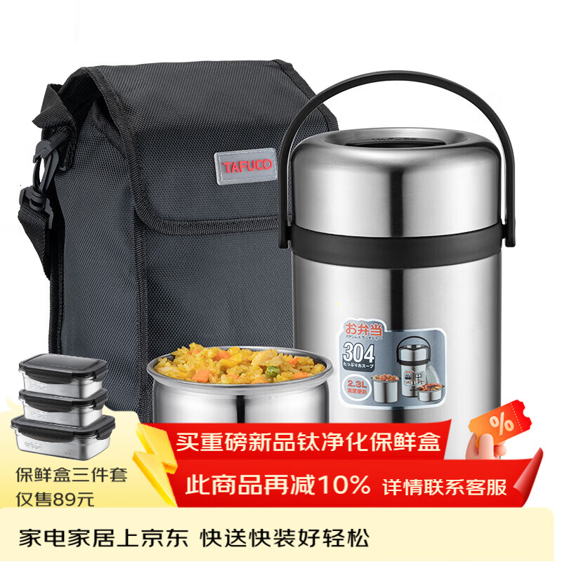 泰福高(TAFUCO)保温提锅304不锈钢大容量便携三层保温桶学生成人2.3L食品级T0320