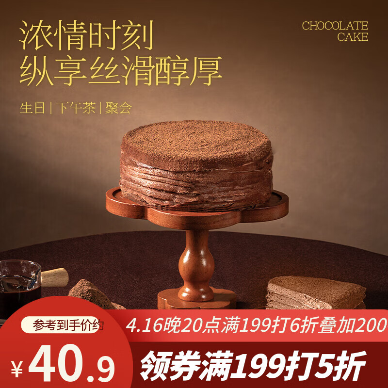 鲜京采纯脂巧克力千层蛋糕400g/6寸 动物奶油雪糕糕点零食甜品中秋聚会