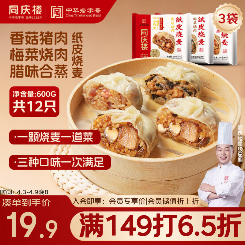 广州酒家香菇干蒸烧麦 210g*2袋 24个 家庭装 面点早餐 速食速冻开学季
