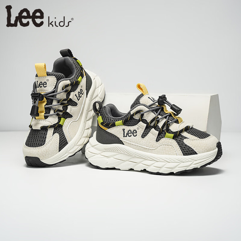 LEE KIDS童鞋秋季新款儿童网面运动鞋女童透气老爹鞋防滑跑步鞋子男大童 灰米 27 【建议脚长169mm】