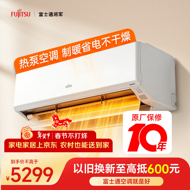 富士通空调诺可力T系列 1.5匹1级能效15-21㎡适用 舒适风变频热泵铜管挂机ASQG12KTCB (KFR-35GW/Bpktb)