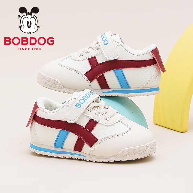 巴布豆童鞋秋季男宝宝儿童学步鞋软底轻便2025新款女童机能鞋 米/酒红 23 适合脚长13.8cm